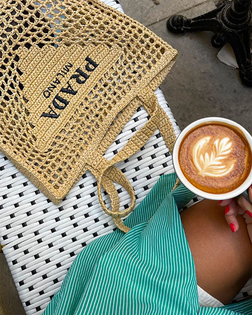 Prada Women's Natural Crochet Tote Bag-Khaki